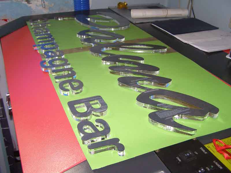 Od plexiglassa možemo izrezivati slova i druge oblike te ih lijepiti na podlogu kako bi dobili reljefnu reklamu. Kombinacijom raznih boja, mogu se dobiti zanimljivi efekti.